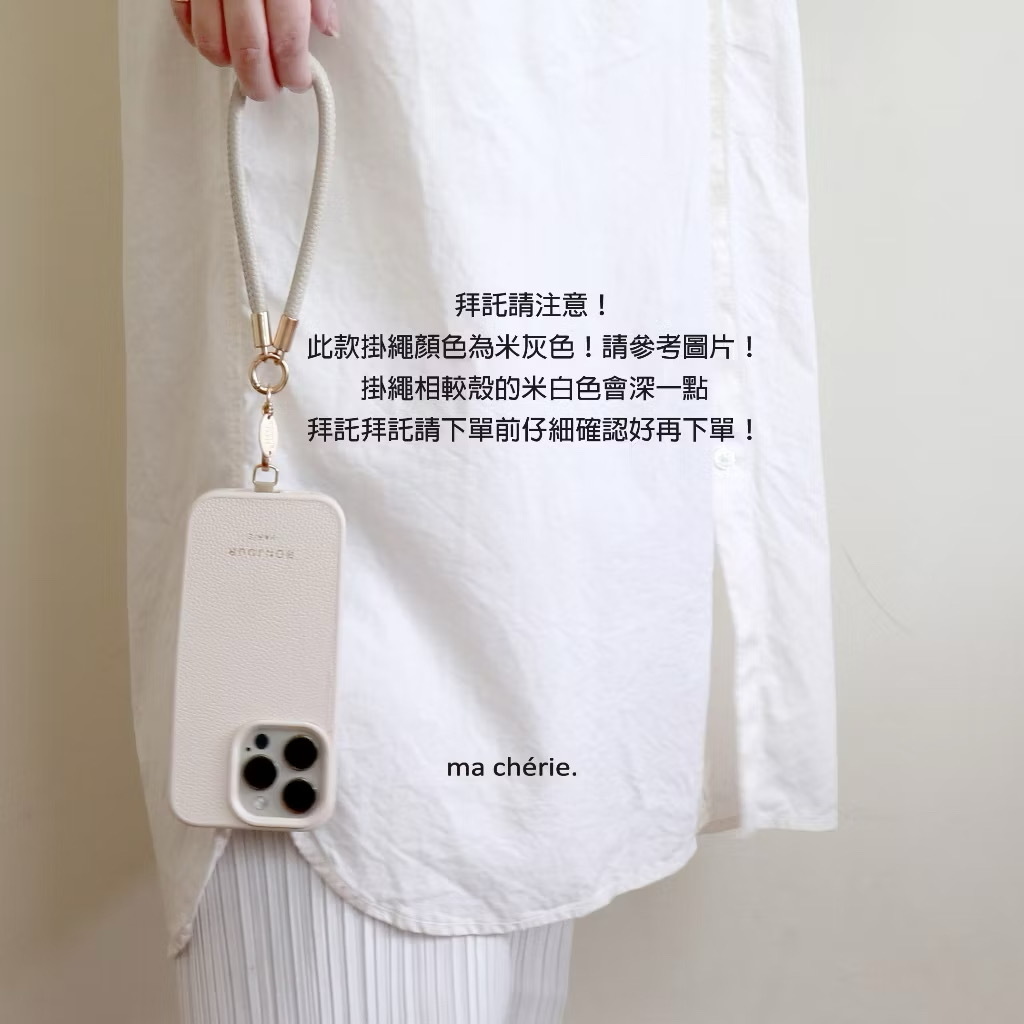 iPhone17/16/15/14/13 燕麥奶色小法國皮革手機殼( 附手腕帶 )