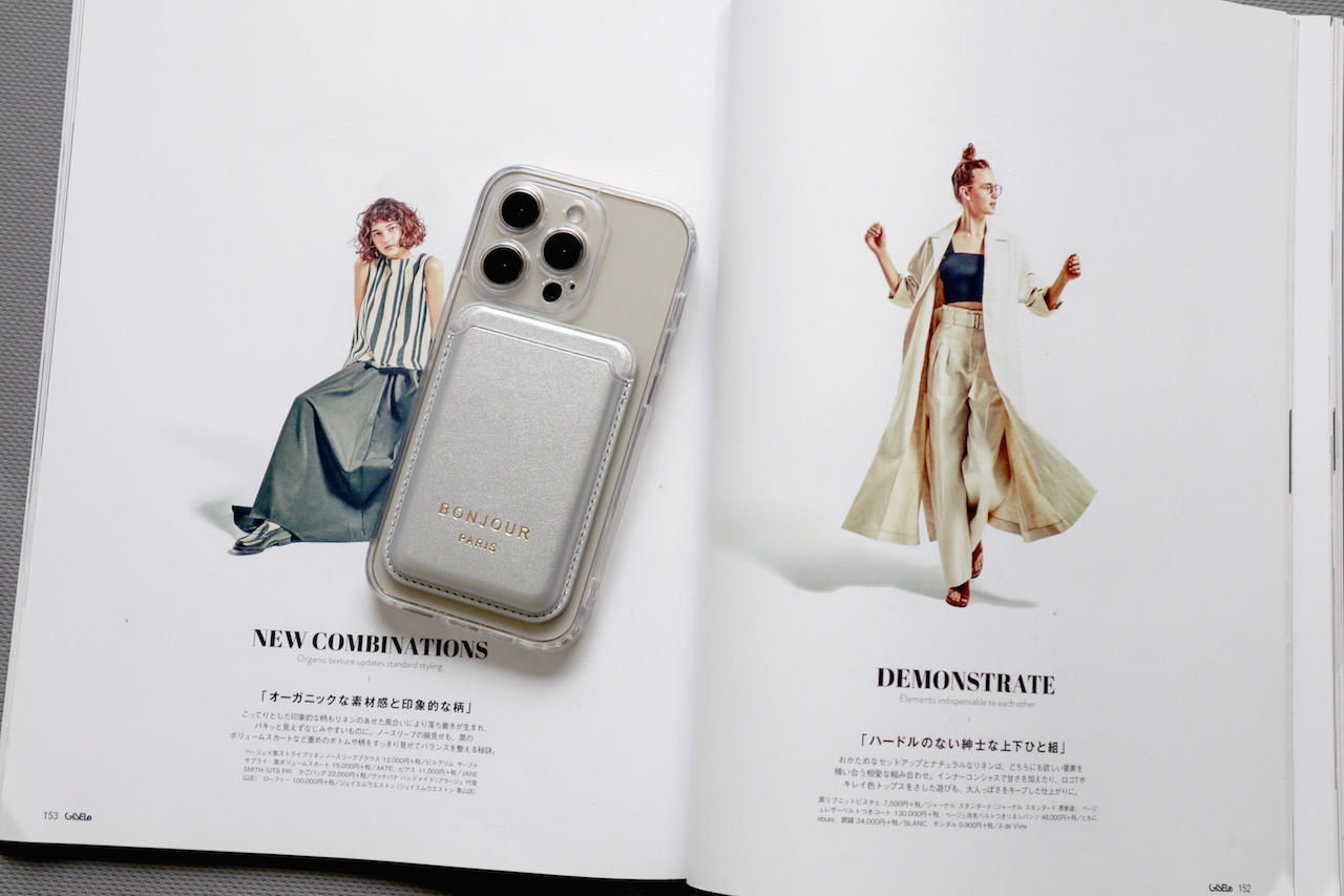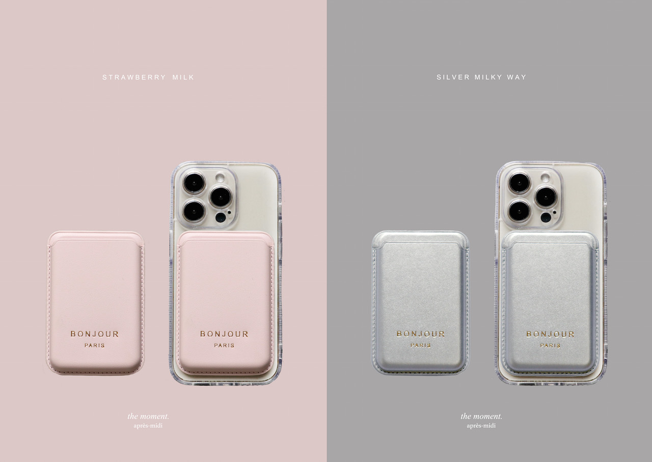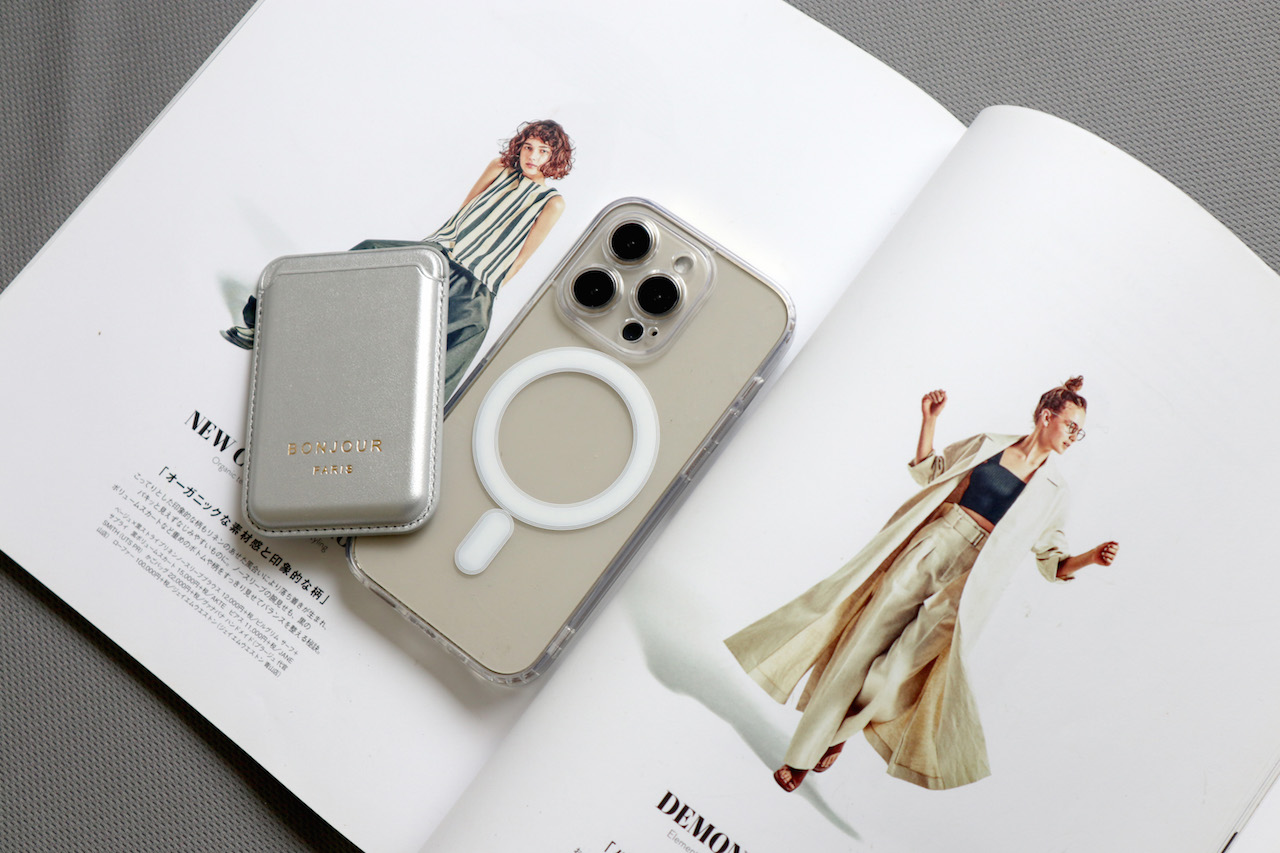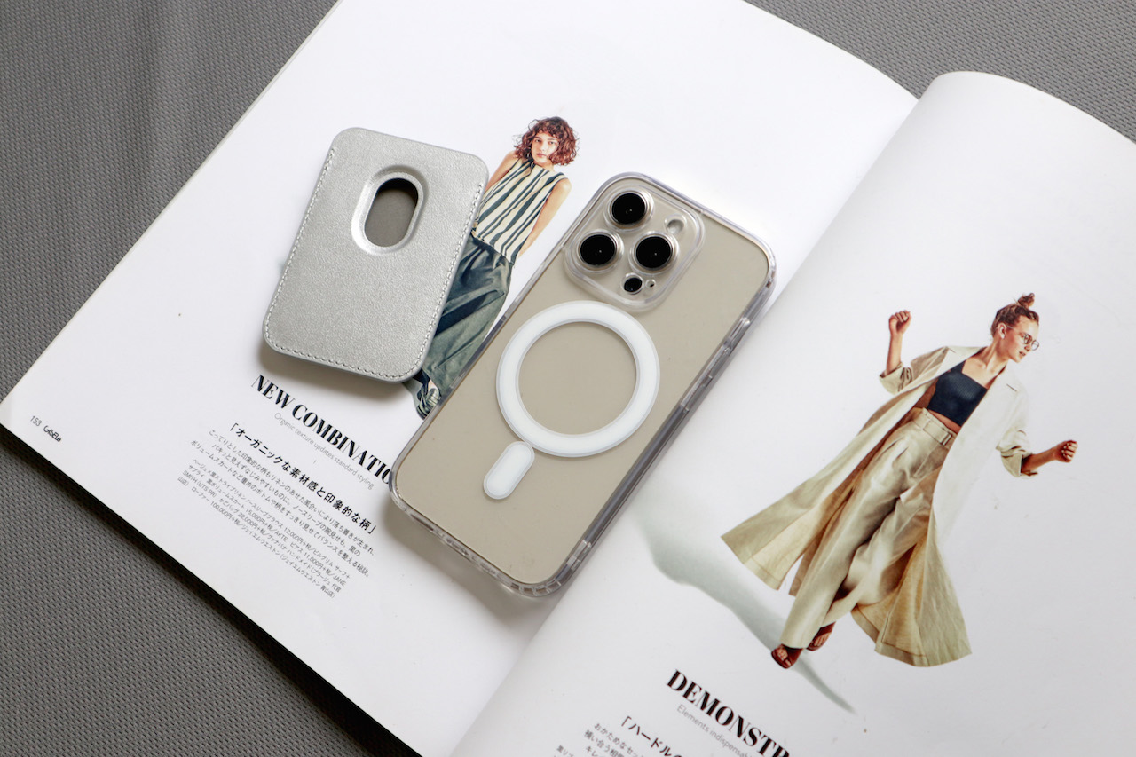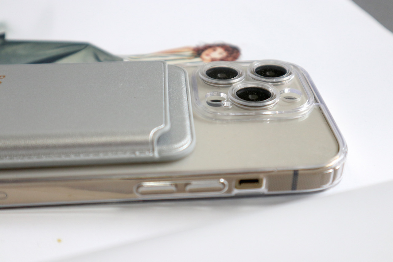手機殼材質為透明磁吸材質 加上銀色磁吸卡夾