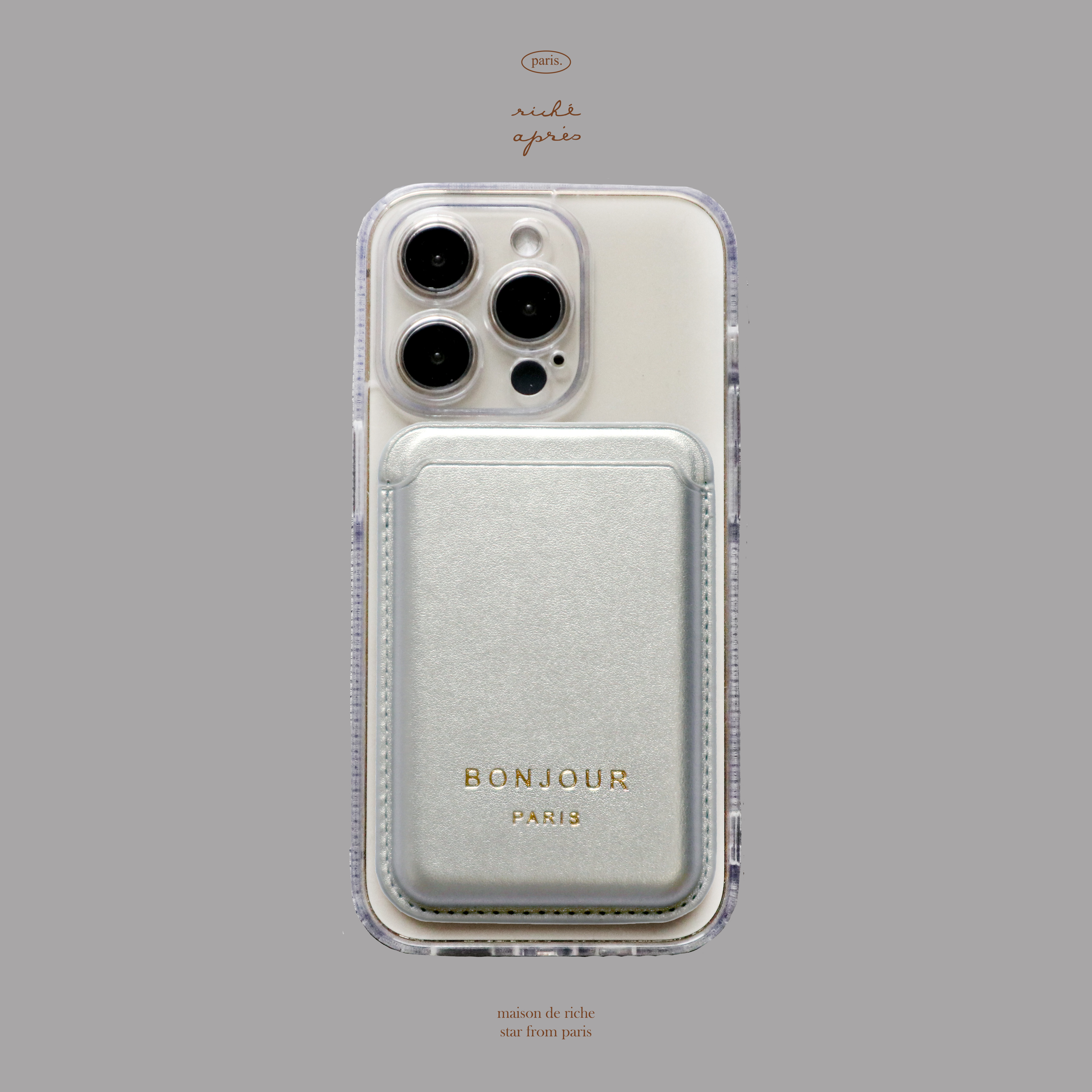 RICHE 品牌直營 Magsafe 星辰銀色手機磁吸卡夾透明手機殼