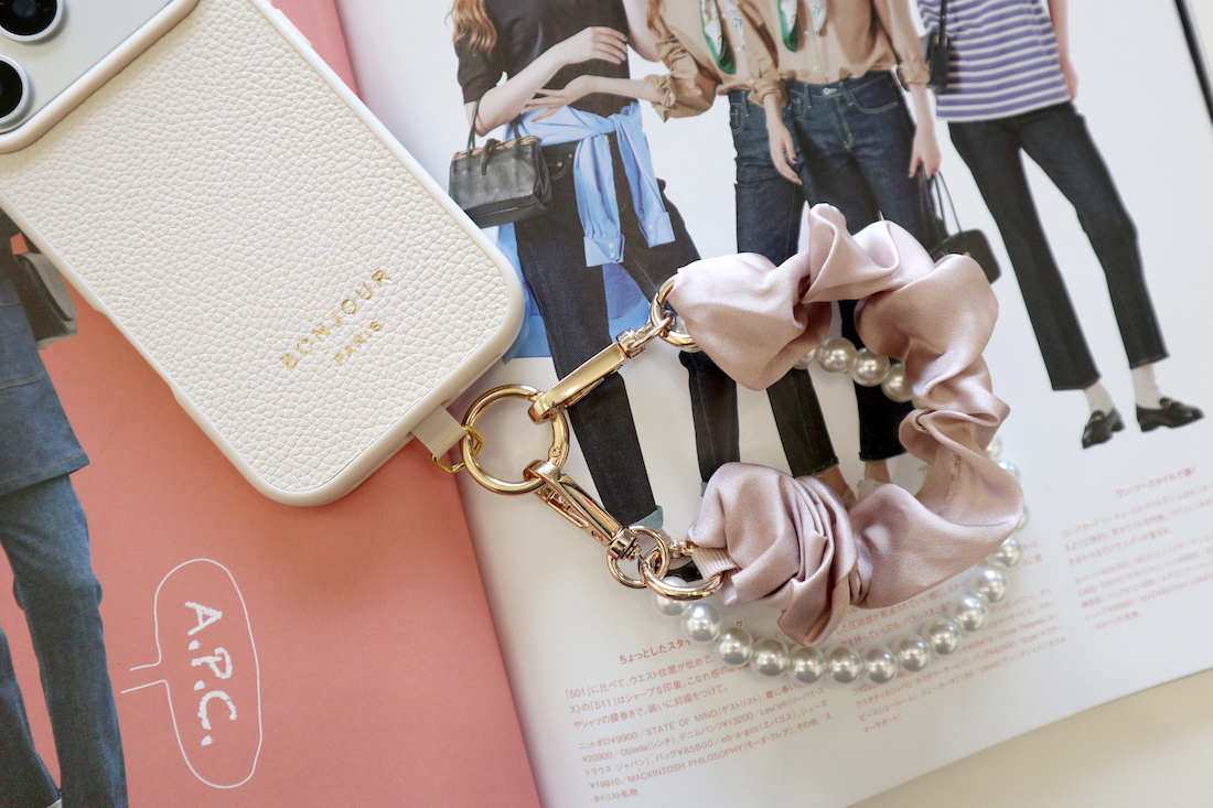 accessory - le printemps Smoke pink pearl hair tie phone chain