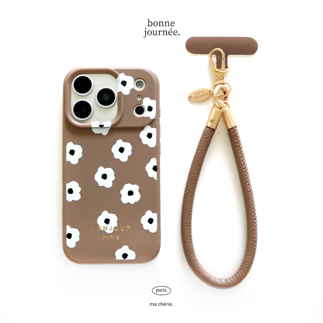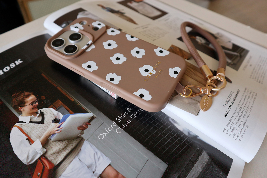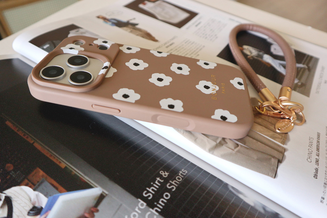日本新品 iPhone17.16.15 焦糖咖啡小白花掛繩手機殼