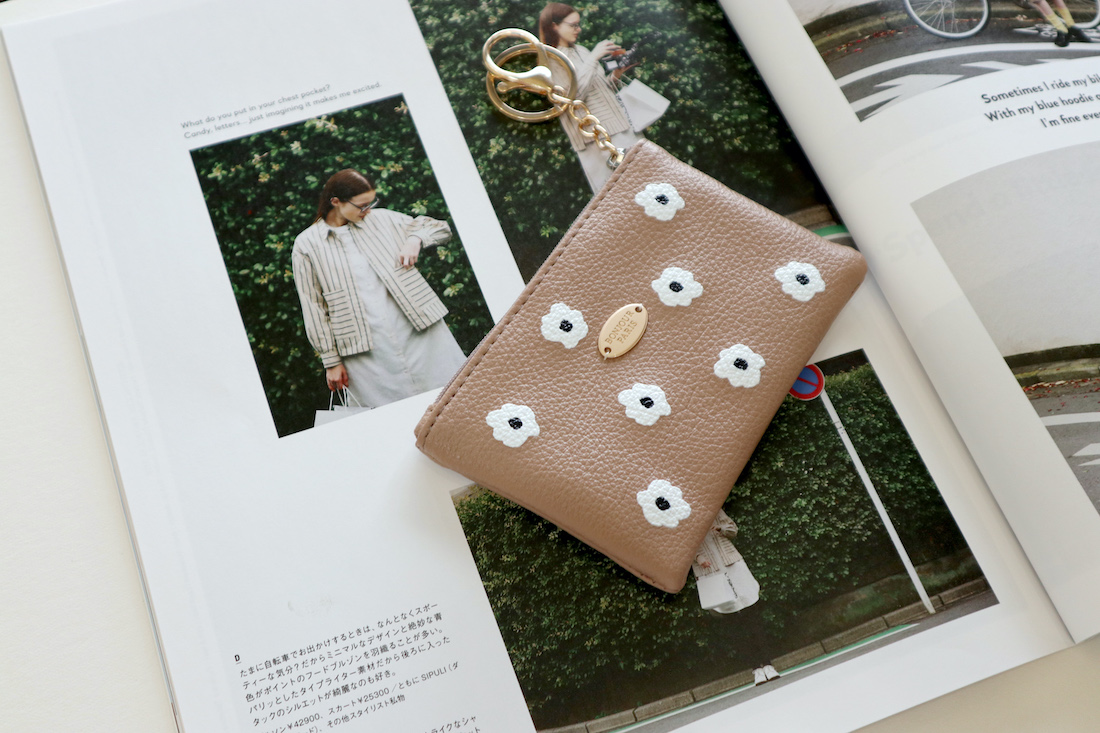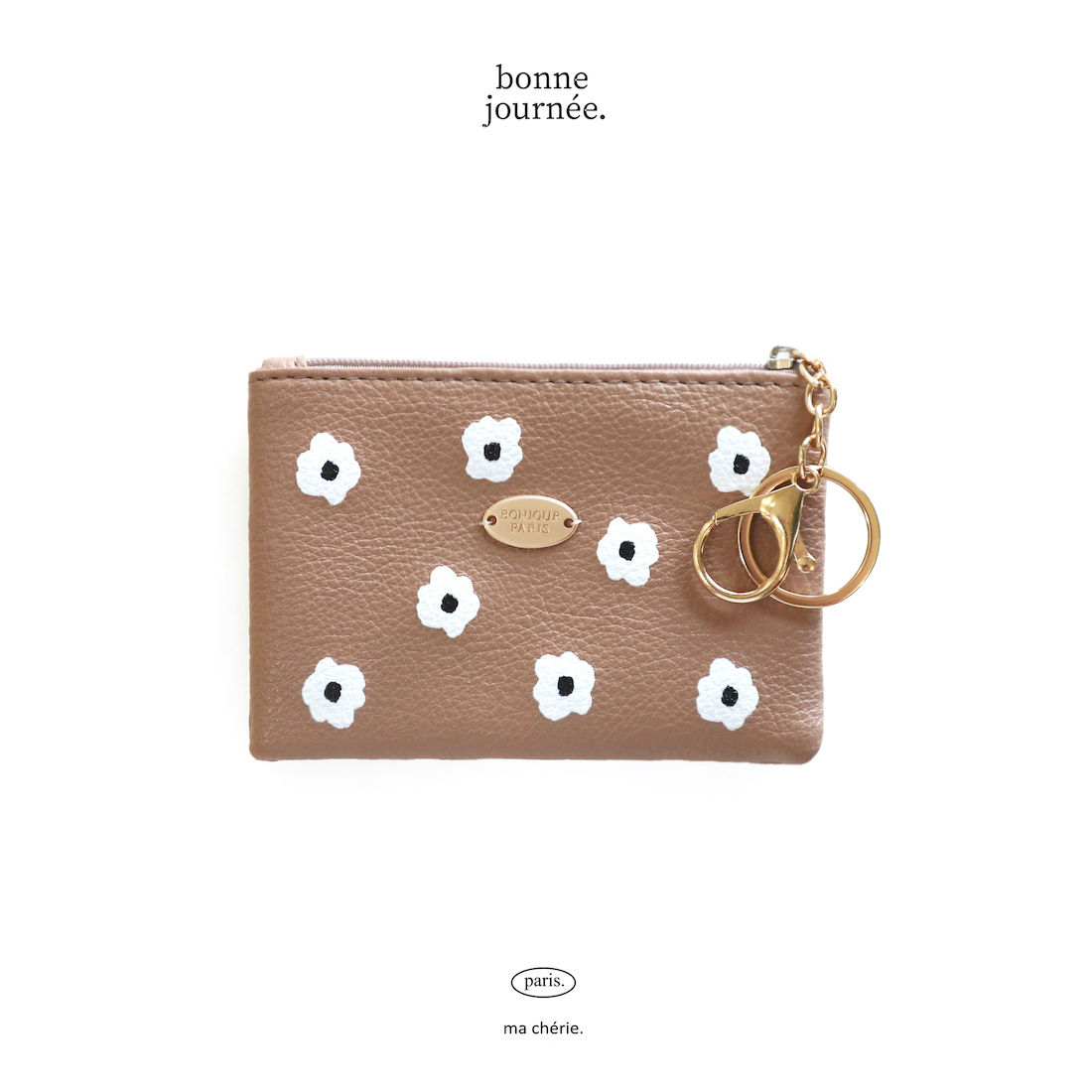 caramel焦糖咖啡小花皮革鑰匙包
